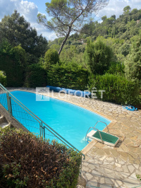 !!! NOUVELLE BAISSE DE PRIX !!!!Dans un Domaine calme et arboré, maison individuelle d'environ 140m², sur un terrain clos de 3800m² Vous trouverez au rez de chaussée, un salon sejour plafond cathedrale avec cheminée, une cuisine separée et equipée donnant sur une terrasse couverte avec barbecue, un cellier et cave avec accès par l'interieur et exterieur A l'etage une mezzanine qui peut faire bureau, 2 grandes chambres avec placards , 1 salle de bains, 1 chambre avec coin douche et sa terrasse donnant sur la piscine sécuriséeTres beaux volumes à rafraîchir et moderniser Garage, piscine, terrain en pente sur la foret pour les amoureux de la nature et des cabanes Appelez nous pour visiter !! (5.20 % d'honoraires TTC à la charge de l'acquéreur.) Carole BARTOLETTI (EI) Agent Commercial - Numéro RSAC : ADC 83022019000160180 - TOULON.