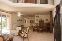 Sur les hauteurs prisées de Montauroux, découvrez cette superbe villa d'environ 135 m², nichée sur un terrain clos et paysagé de 2 900 m², offrant une vue panoramique sur le village et un cadre de vie paisible.L'espace de vie séduit par sa luminosité, sa belle hauteur sous plafond et sa cheminée de caractère. La cuisine semi-ouverte, spacieuse et conviviale, s'ouvre sur une terrasse baignée de soleil, idéale pour vos repas d'été.À l'étage, un espace bureau et deux chambres, chacune avec sa salle d'eau ou salle de bain privative, allient confort et intimité.À l'extérieur, un garage indépendant offre la possibilité d'être aménagé en T2, parfait pour accueillir famille ou amis, ou pour un projet locatif.Un bien rare et harmonieux, où vue, charme et tranquillité s'unissent à quelques minutes du centre du village. (5.03 % d'honoraires TTC à la charge de l'acquéreur.)